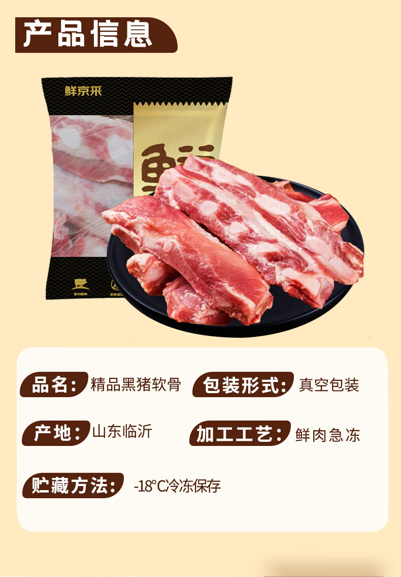 鲜京采黑猪排骨边 猪软骨(含硬骨50%) 净重4斤 源头直发 【在售价】39.90元 【到手价】39.90元 下单链接:https://u.jd.com/0GgcJ7N