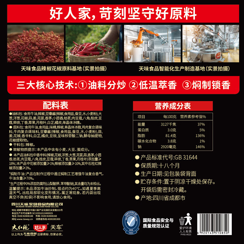 好人家第三代厚火锅底料500g 0添加火锅底料牛油麻辣香锅家庭聚会调料