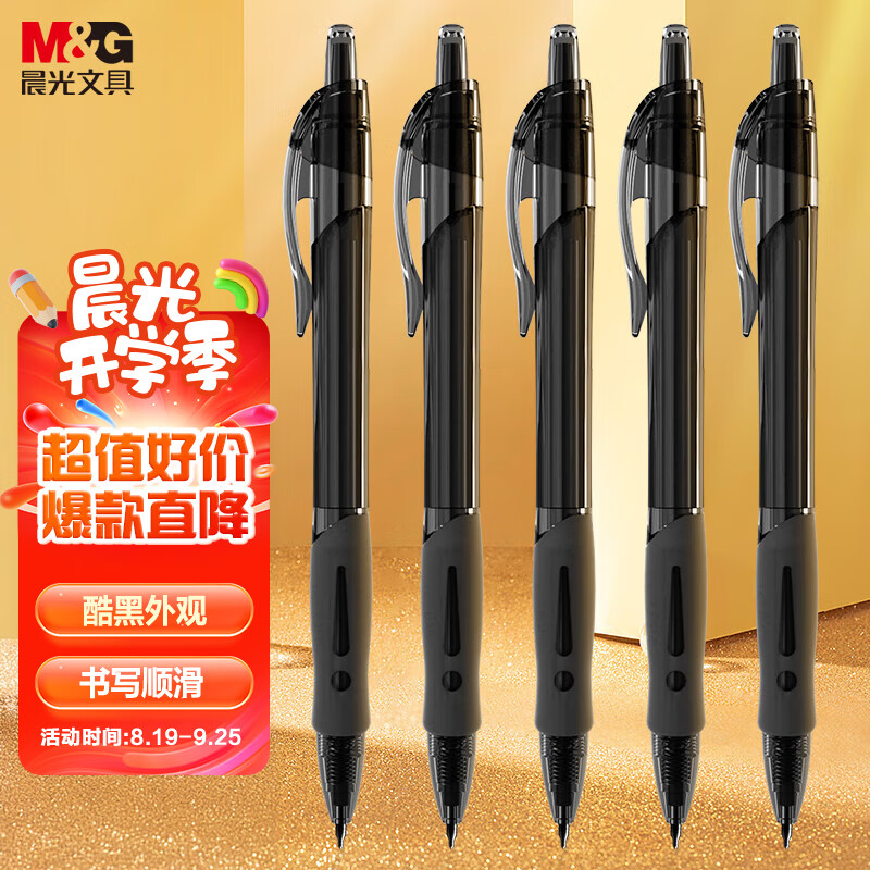 晨光(M&G)文具 0.5mm黑色按动中性笔 酷黑GP1008签字笔 速干ST笔尖 学生考试刷题/办公用5支装AGP023X3A考研 【在售价】8.80元 【到手价】8.80元 下单链接:https://u.jd.com/YapLvLA