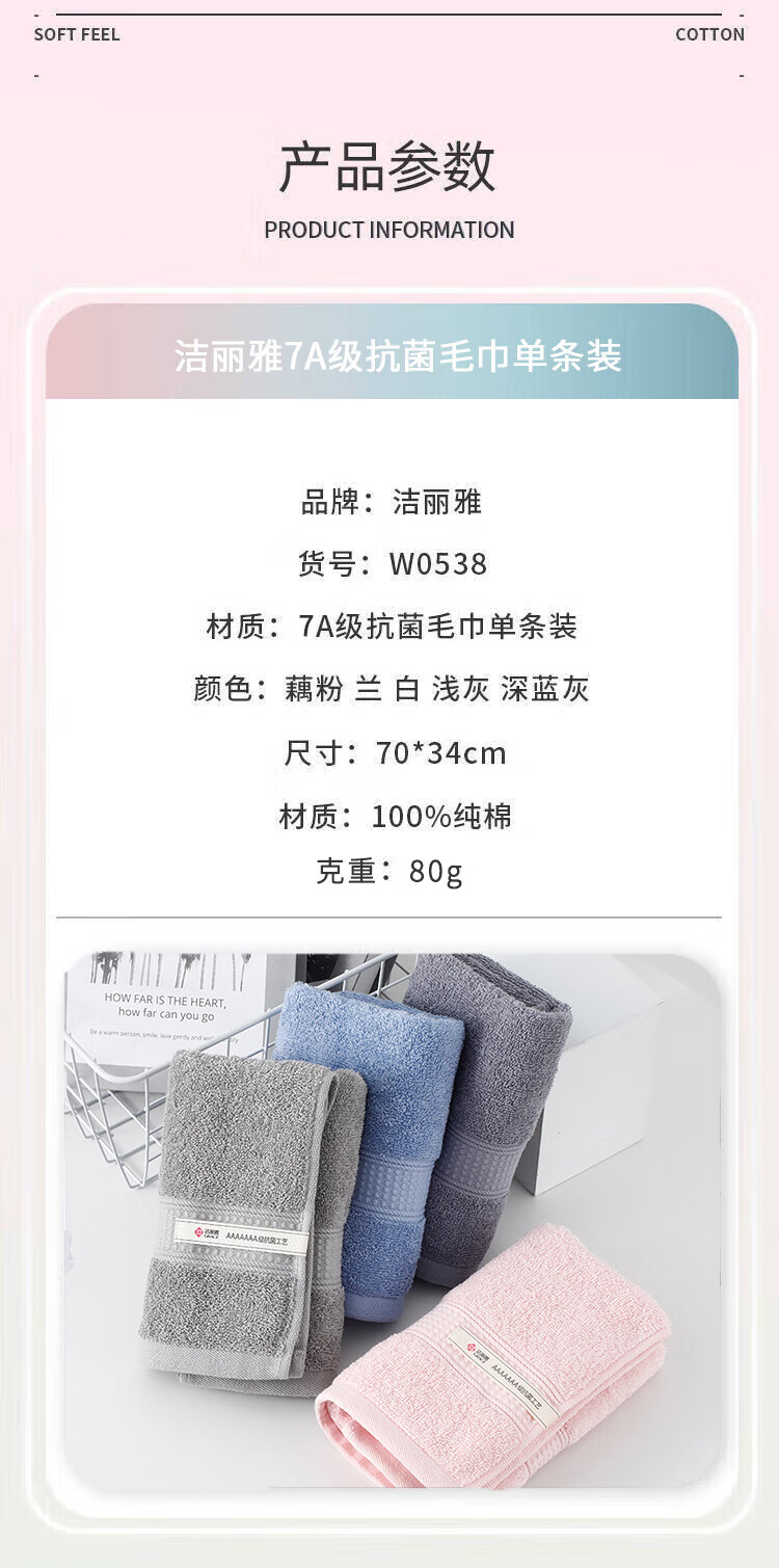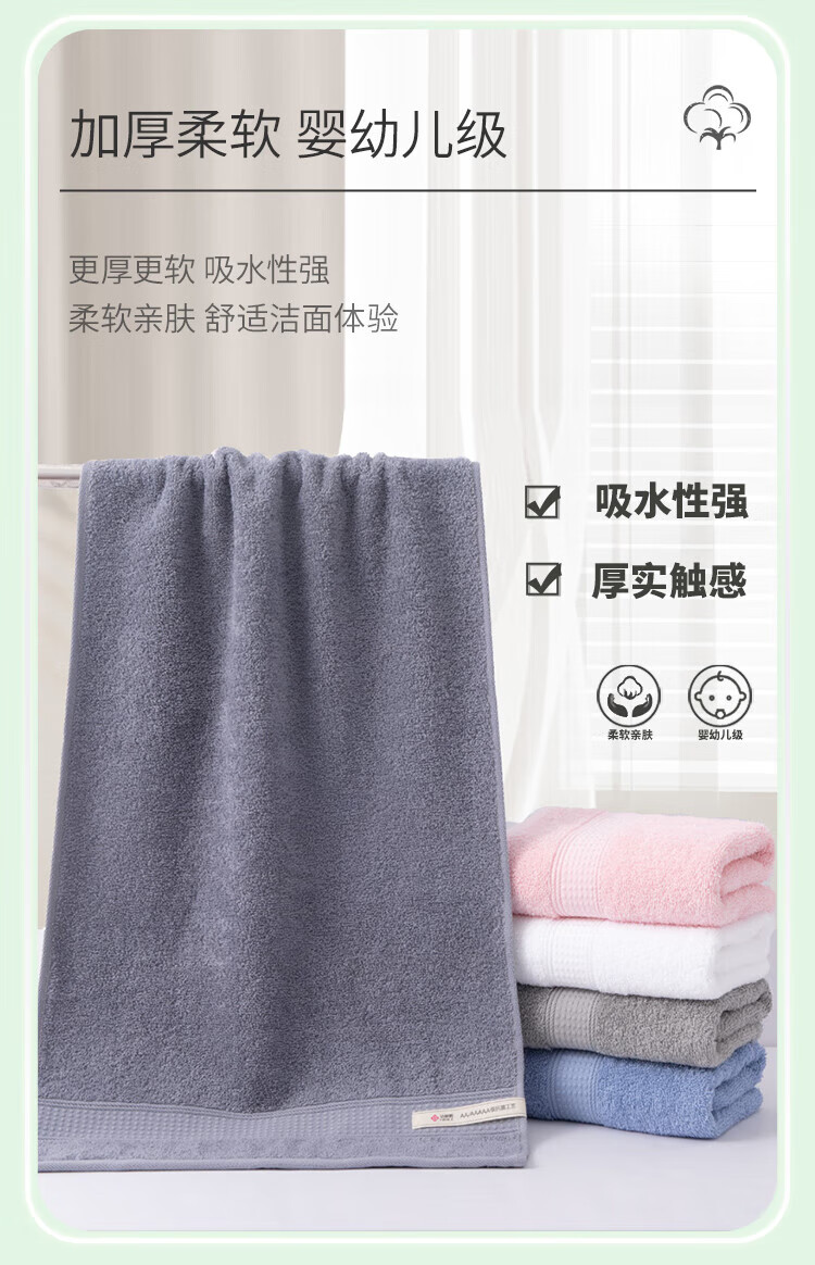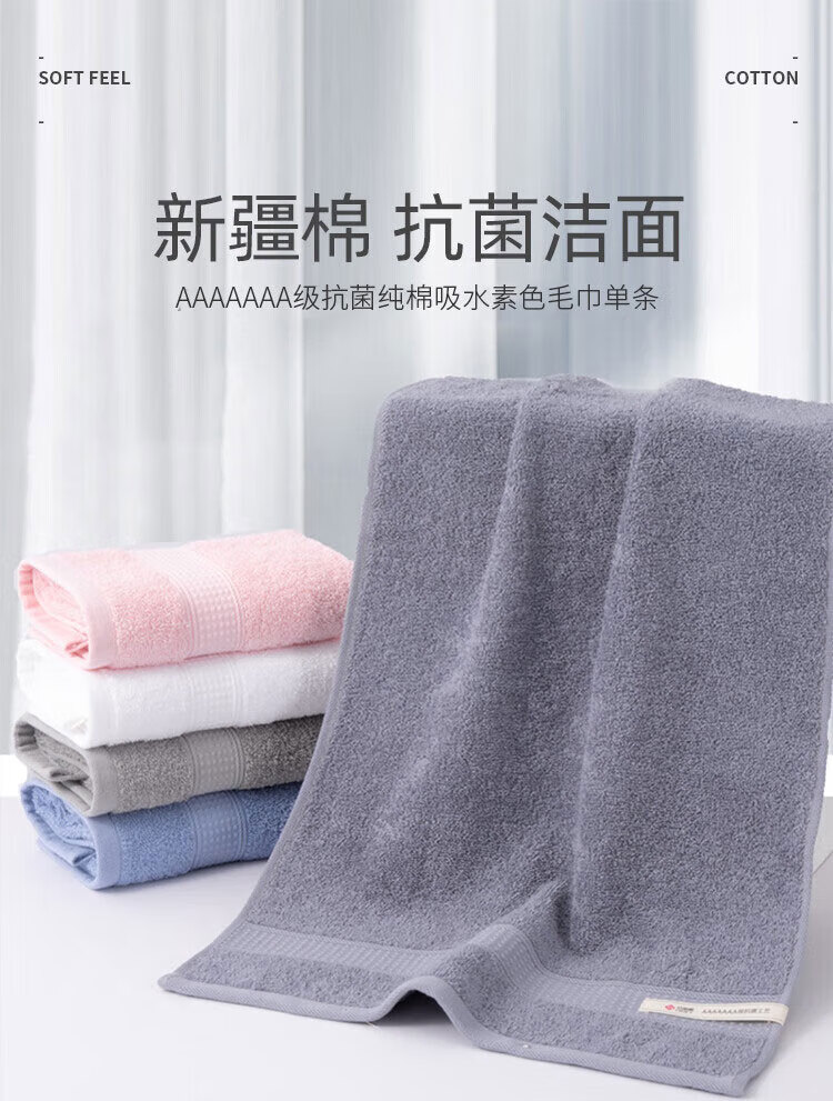 洁丽雅(Grace)新疆棉7A抗菌毛巾纯棉吸水素色柔软洁面巾擦脸巾 单条装 灰色 【在售价】12.90元 【到手价】7.90元 下单链接:https://u.jd.com/06zUXmE